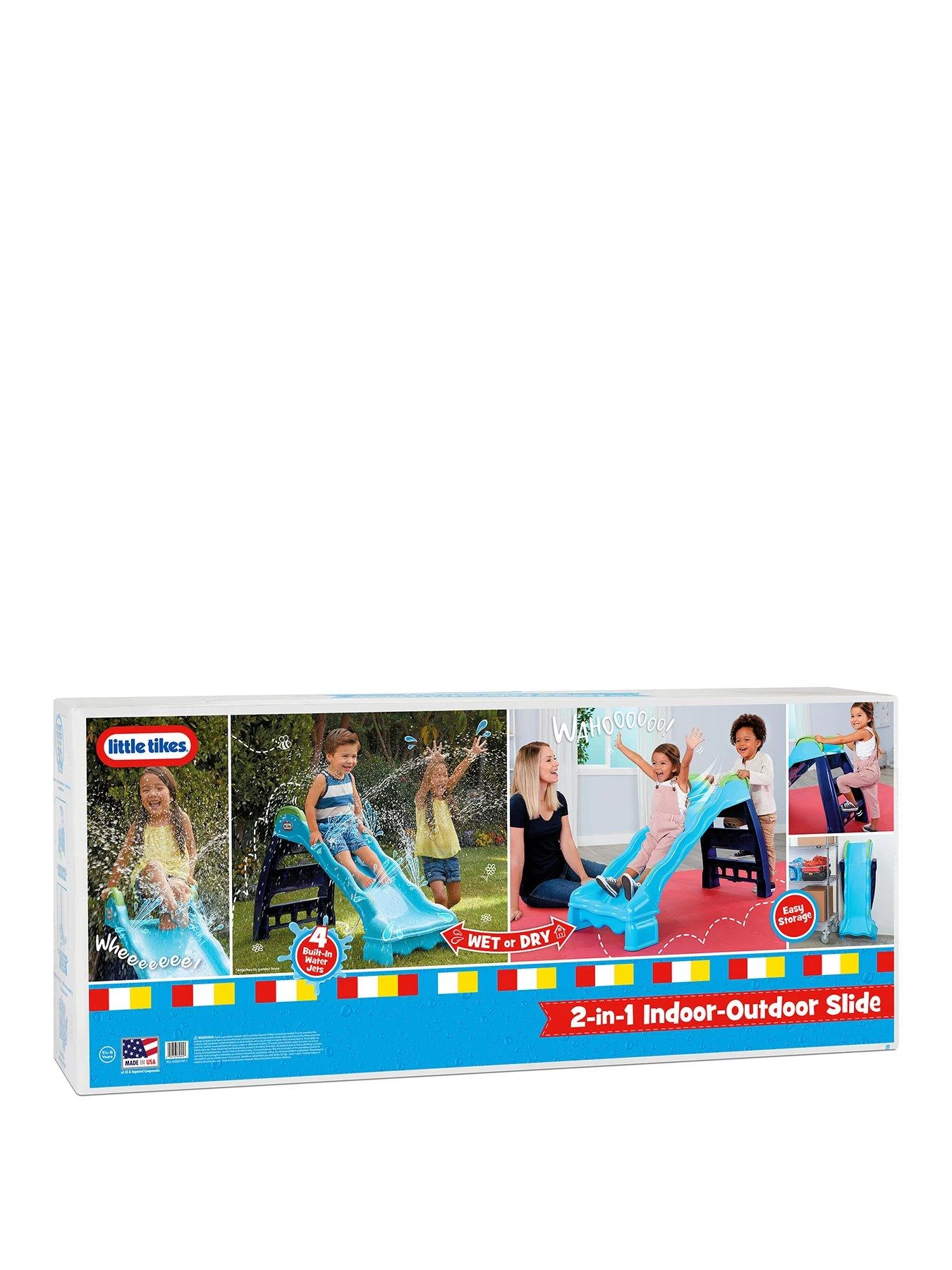 The Little Tikes 2-in-1 Indoor-Outdoor Wet or Dry Slide is the perfect all-weather, all-year playset, designed to encourage active play and help your little one build confidence.
