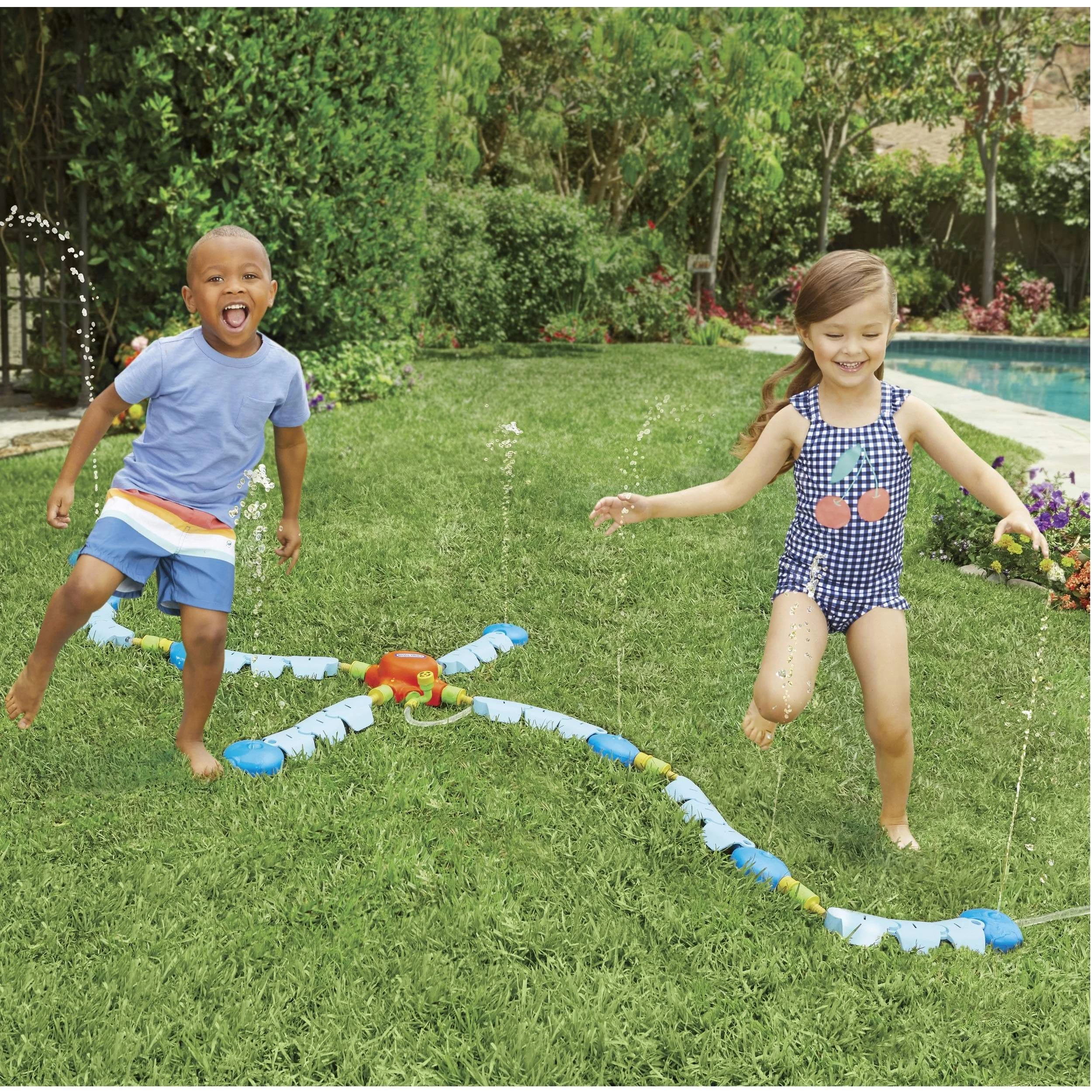 - Hours of water fun! Â Kids can cool down and run around under the water sprinklers in their own backyard