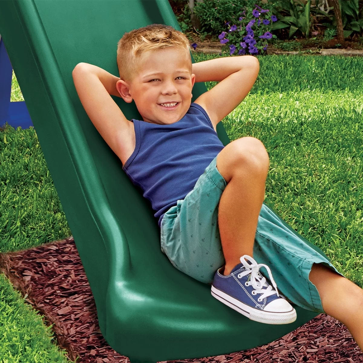- Gentle slope with a slide measuring 1.8 m