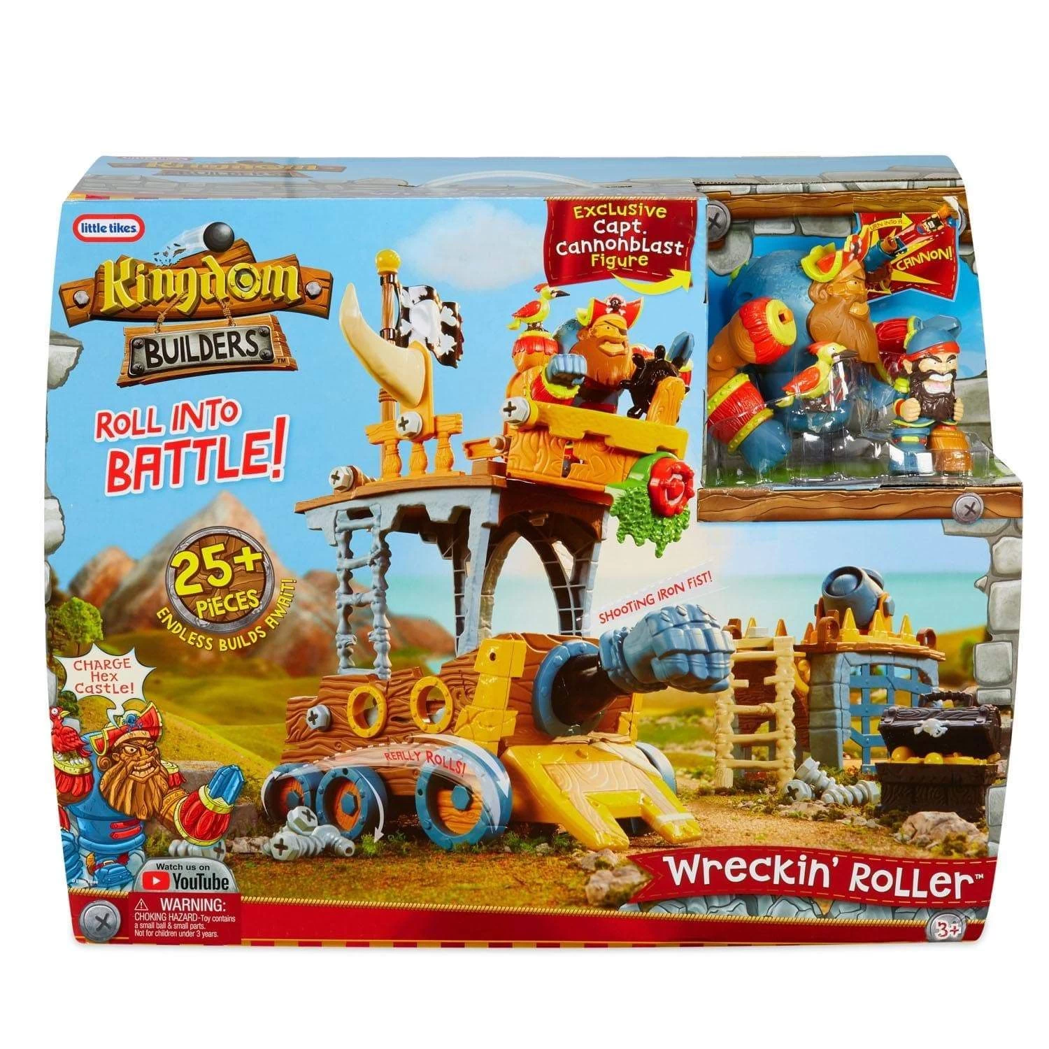 Kingdom Builders are the only toys that combine figural play with role-play tools that unlock a magical world of adventure! There are multiple ways for kids to build the Wreckin’ Roller. The Wreckin’ Roller is controlled by Captain Cannonblast and is designed to cause havoc for the Hex Castle! Captain Cannonblast is included and he shoots himself through a cannon. The Wreckin’ Roller encourages imaginative and creative play!