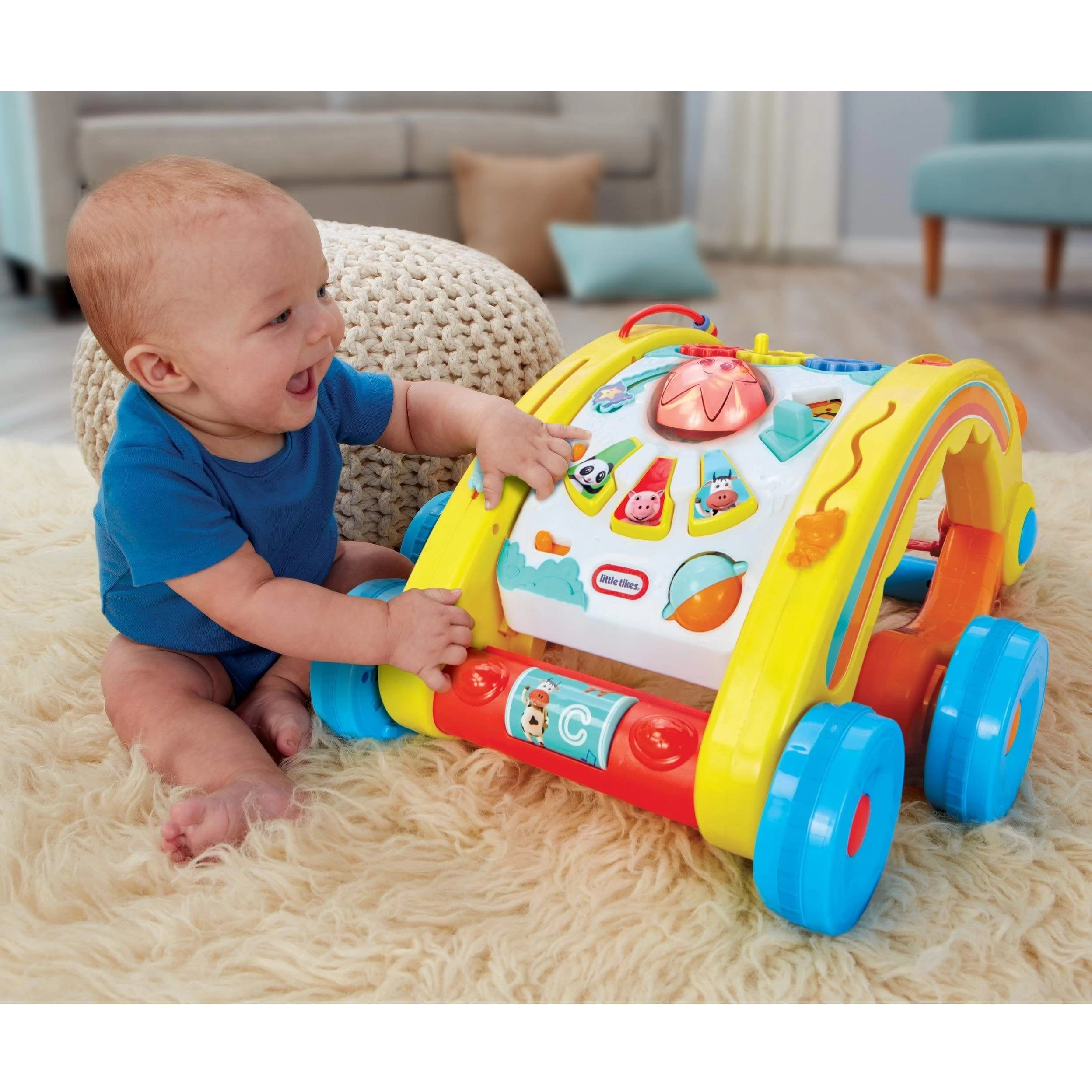 Inspire your baby to get moving with the Little Tikes Little Baby Bum Twinkle’s Musical Walker. Twinkle’s Musical Walker is three toys in one: a walker, standing activity table, and sit and play activity center. As kids walk, Twinkle’s Musical Walker projects lights forward, encouraging them to take their first steps. Featuring 55+ activities, songs, and sounds, this walker provides hours of fun.