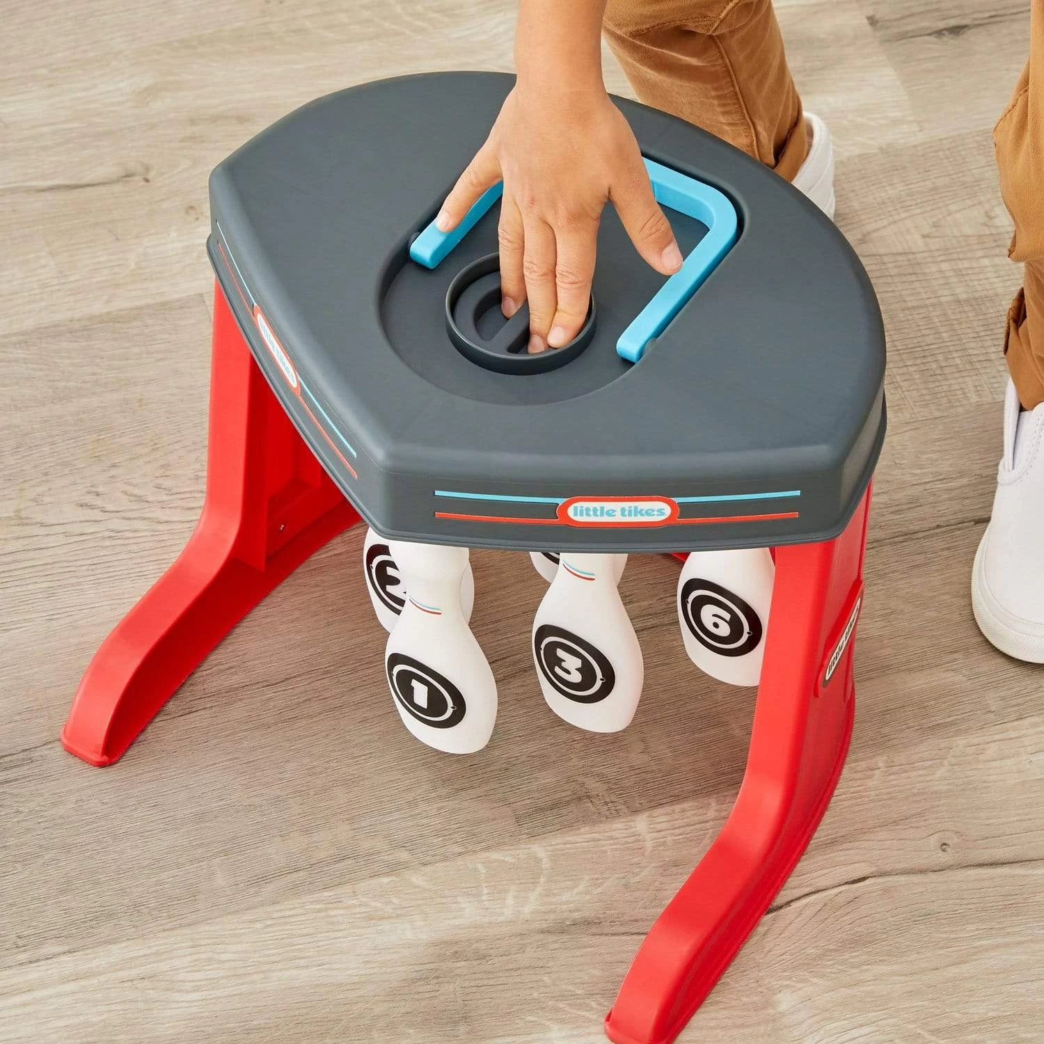 The innovative, new Little Tikes My First Bowling Set lets kids bowl and reset the pins with the push of a button! This six pin bowling set has a console that lets kids reset their pins instantly while they play, so there’s no more hassle in delicately balancing pins. The included bowling lane and two balls lets your kids play right away with no assembly. The built-in handle also makes it easy to transport the My First Bowling Set so kids can play anytime, anywhere. Let your kids bowl a perfect game with this perfect gift: the My First Bowling Set by Little Tikes.