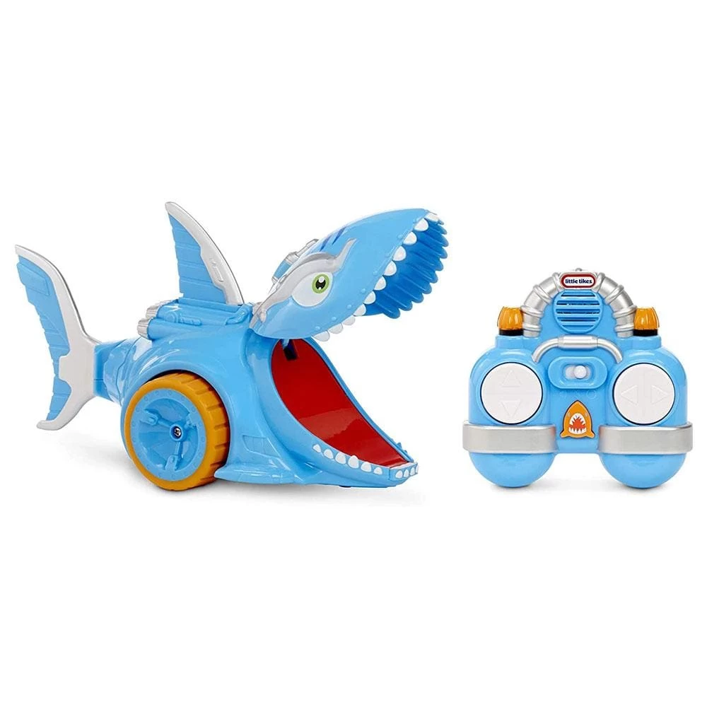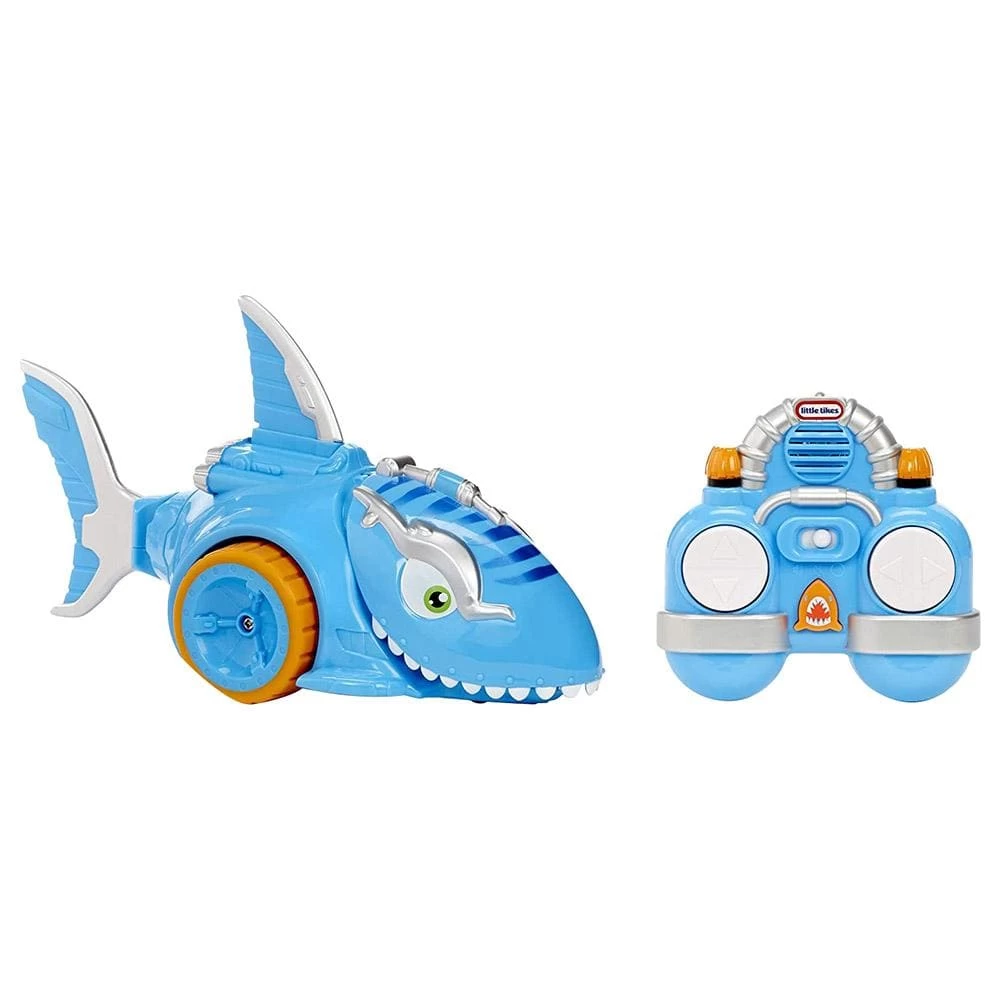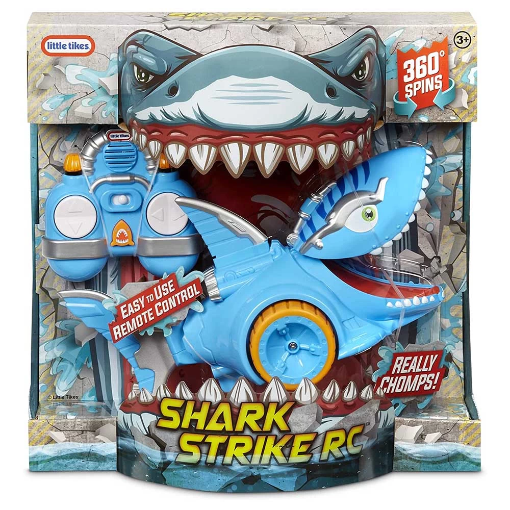 Shark Strike RCis an easy-to-use radio control toy car that puts kids in total control of the shark’s speed and direction! Shark Strike RCis built for stunts with impressive speed and 360? spins. When kids drive Shark Strike RCforward, the shark’s mouth opens, and it chomps down and thrashes. It gets kids in the swim by making shark sounds, playing music and wagging its fins as kids drive it around. Let your kids’ inner sharks out with Shark Strike RCby Little Tikes!