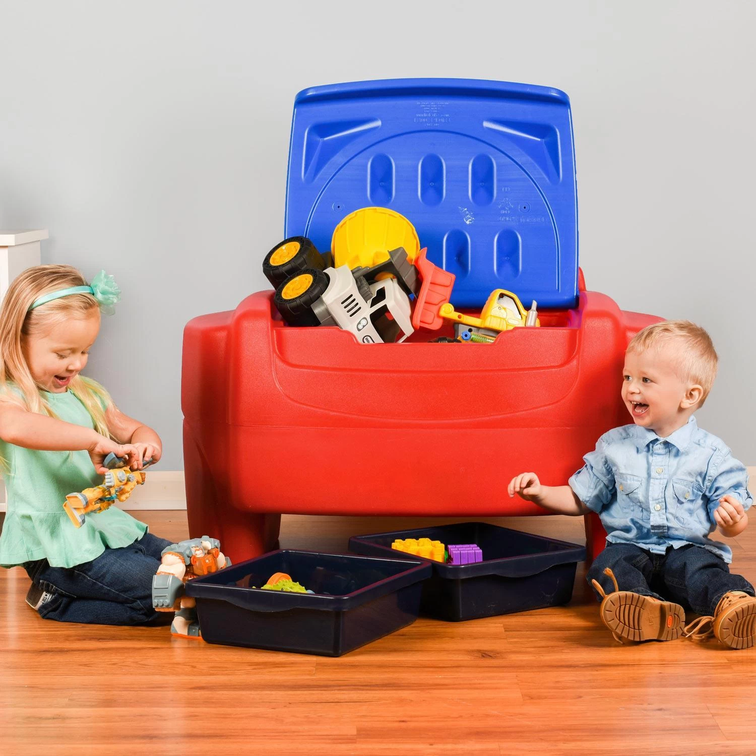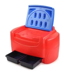 - Two removable bins hold smaller toys.