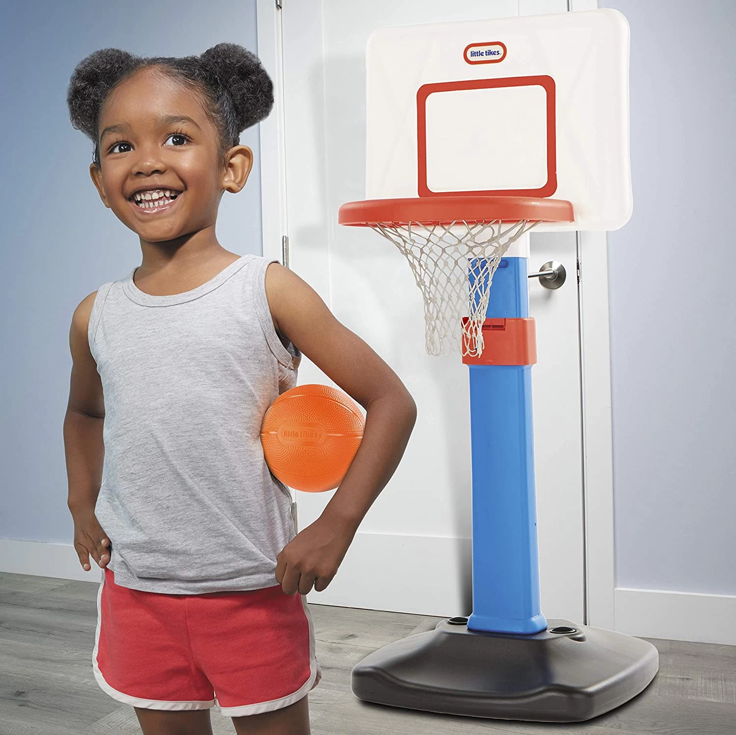 This adjustable kids basketball hoop encourages active play and introduces children to competitive play in a way that allows them to succeed with the right amount of challenge.