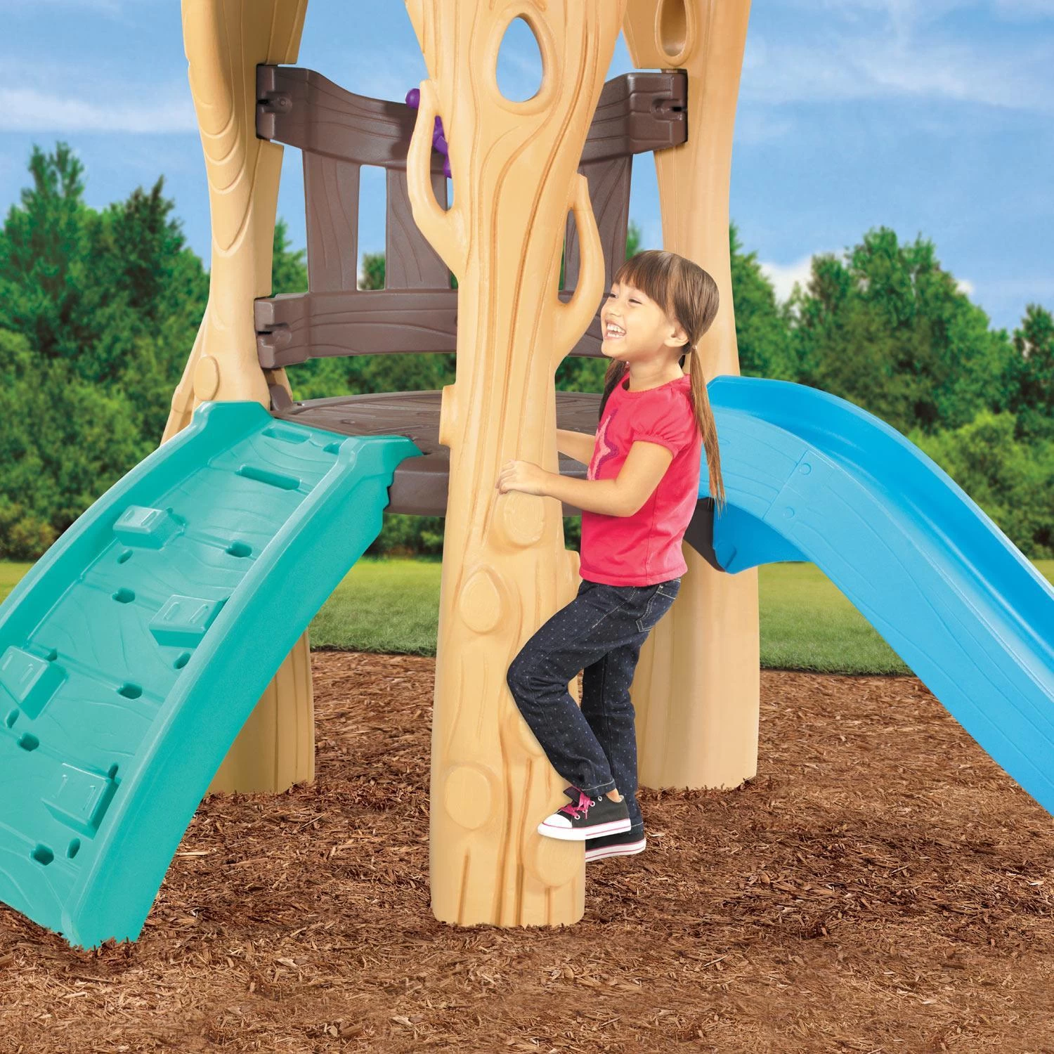 - Kids can climb the tree trunk using the molded in grab handles.