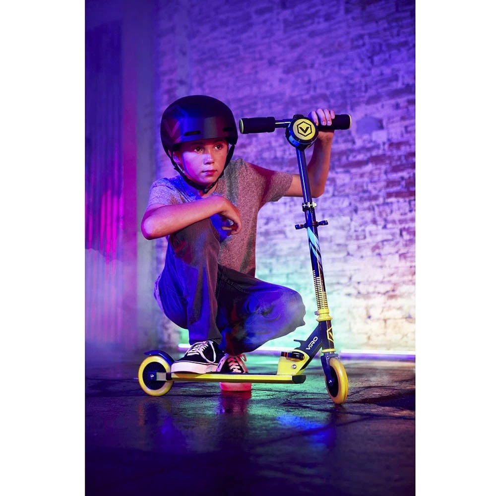 The perfect scooter for riders who want to rock while they roll! With a detachable Bluetooth speaker, and lightweight, compact folding design, the VR 240 soundtrack kick scooter lets riders move to their own beat. Portable Speaker: Comes with a detachable, wireless speaker for playing your favourite music. Lightweight, Aluminium Frame: Great for riding around the neighbourhood. Folds Compact: Compact folding design makes for easy storage.