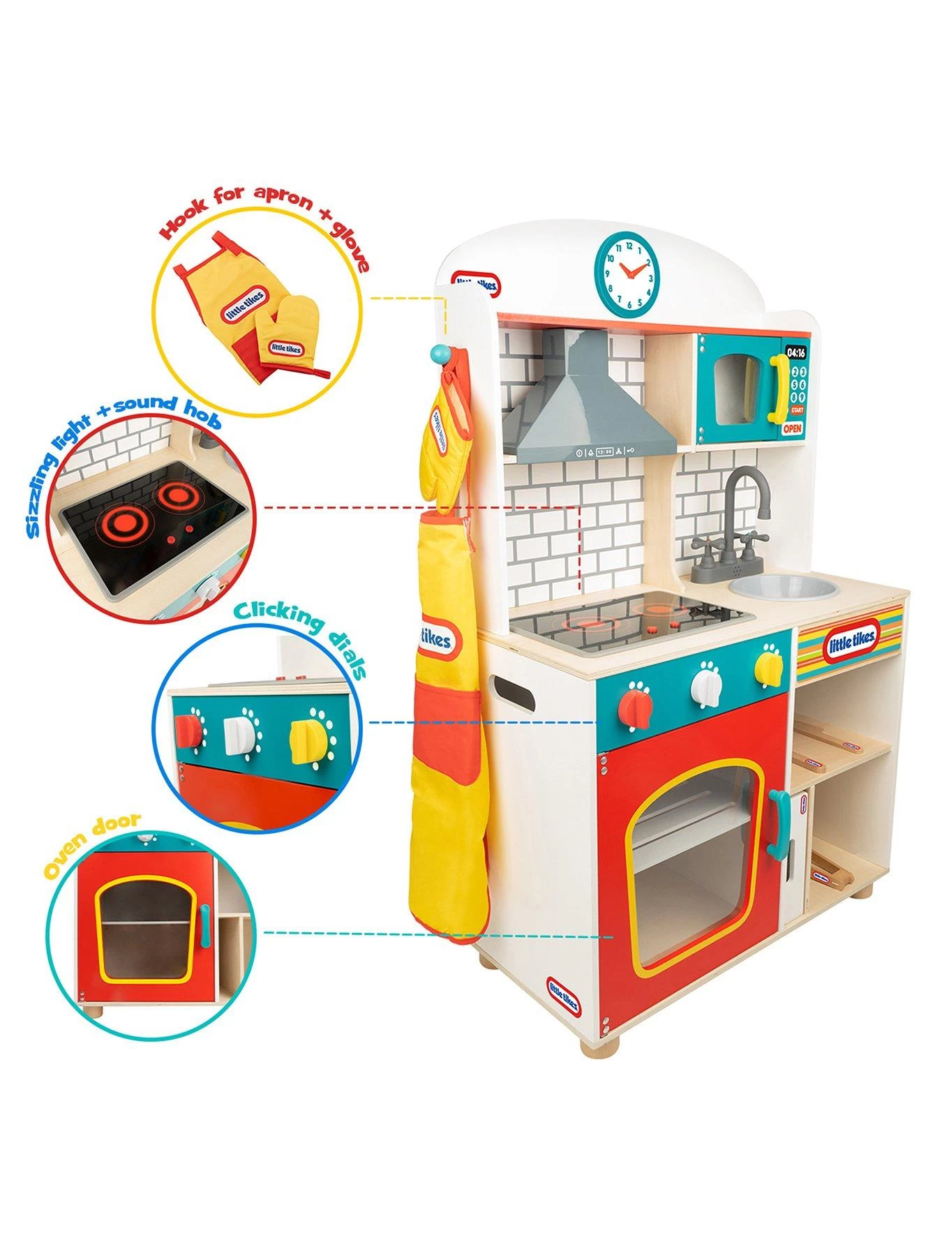 The New Little Tikes Wooden Kitchen with Light and Sounds is ideal for encouraging imaginative play and storytelling.